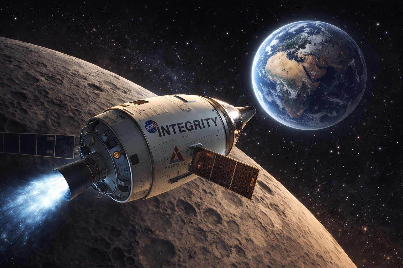 And then there are four people, circling the Moon in a capsule named Integrity, sending back images of a blue world that looks — from a quarter-million miles away — astonishingly small, and astonishingly fragile.